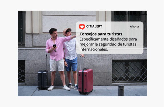 Citialert® es una solución tecnológica que ayuda a administraciones, destinos y operadores turísticos a reforzar el deber de cuidado (duty of care) del turista internacional mediante alertas geolocalizadas e información preventiva en su idioma.