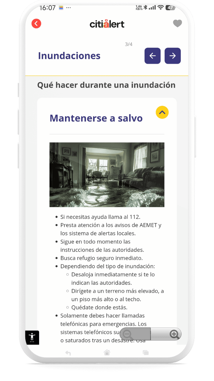 Citialert® emite consejos de seguridad fusionados con alertas emitidas por organismos oficiales, que buscan a quien las necesita, donde las necesita, cuando las necesita y en el idioma que necesita.